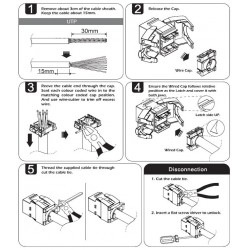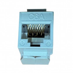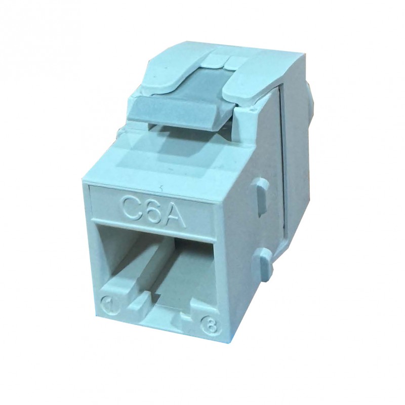 Acorde a la normativa Cat.6A para el conector RJ45. Diseñado para instalar en paneles de parcheo, rosetas y cajas de superficie.