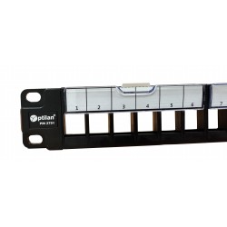 La unidad de embalaje se compone de un panel vacío de chapa de acero doble y veinticuatro conectores hembra FTP CAT.6ª para su montaje lineal, proporcionando un acabado similar al de un panel integrado. Los conectores no necesitan herramienta de conexión, y el panel lleva integrado un guiacables posterior para una perfecta organización e identificación del cableado.